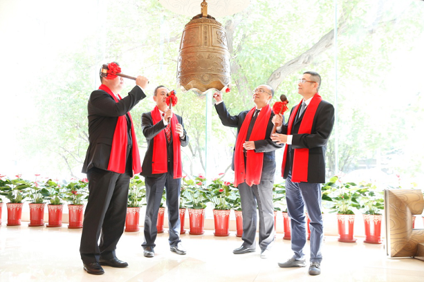 辽宁国测黄金股份有限公司董事长栾辉(右2)敲响开市宝钟